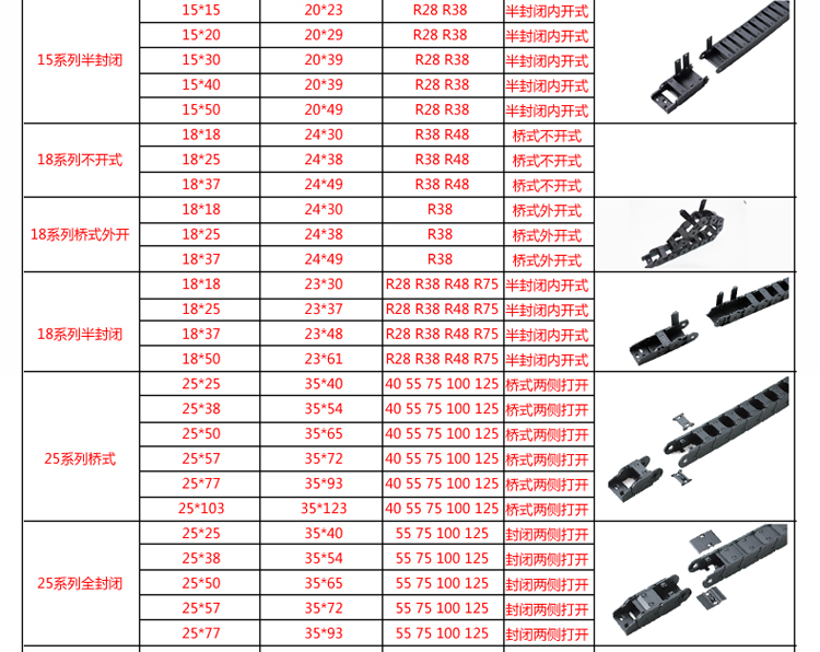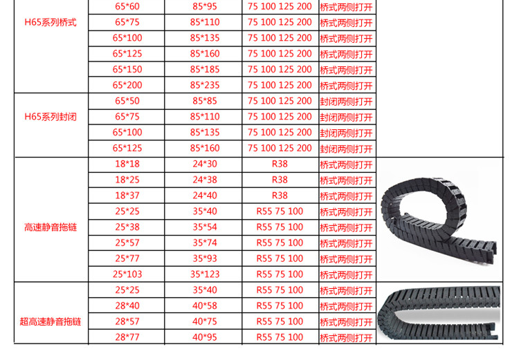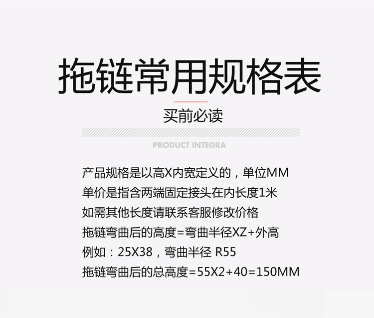 產(chǎn)品規(guī)格是以高*內(nèi)寬定義的,單位為MM,單價是指含兩端固定接頭在內(nèi)長度1米。