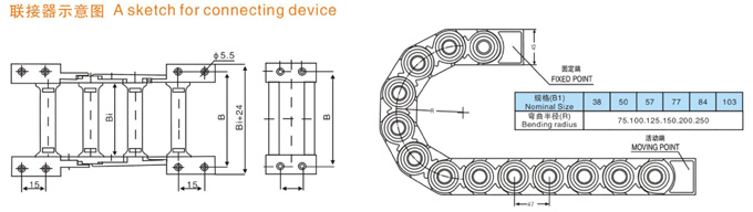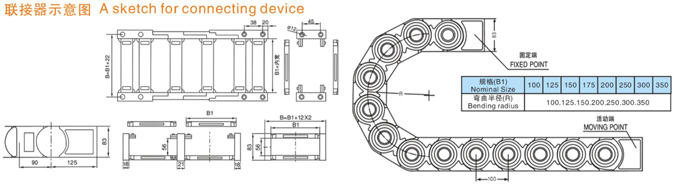 TL1型塑料拖鏈規(guī)格型號設計為組合式加強型,可任意上下開啟,安裝方便,結(jié)構(gòu)合理堅固耐用.